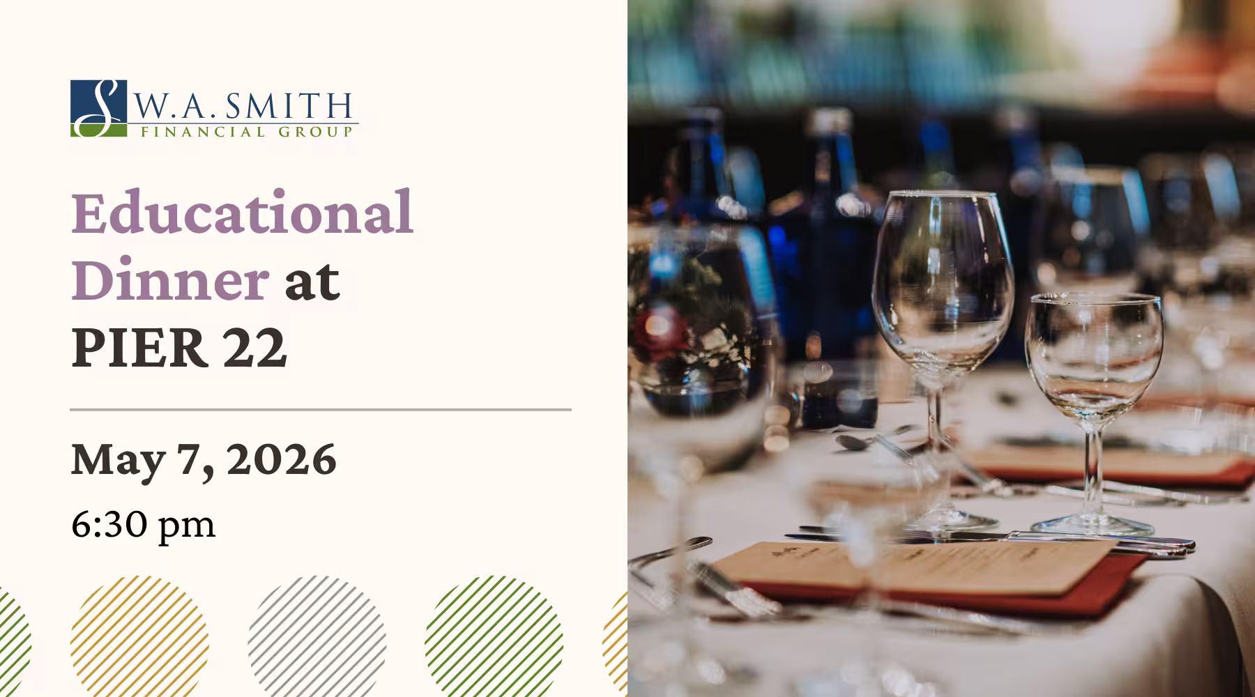 This educational dinner is for people who’ve built real wealth and want to protect it in retirement. We’ll cover income planning, tax strategy, and investment risk so you can avoid costly mistakes.